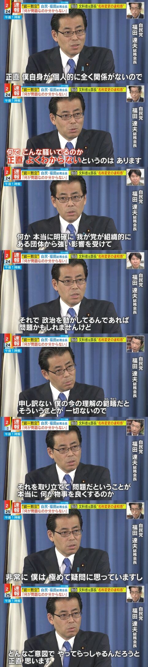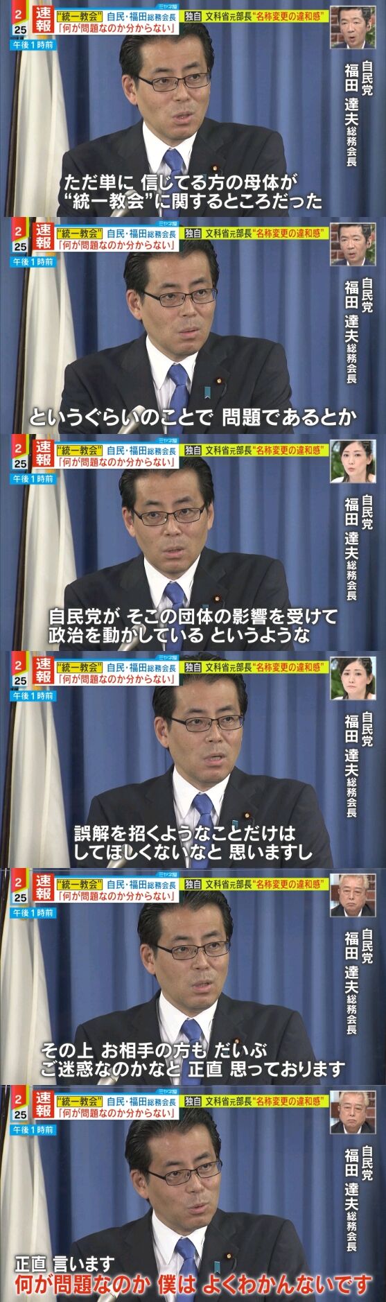 この人の会見は「統一教会と自分は全く関係無いし知らないから理解できない」という趣旨だよ