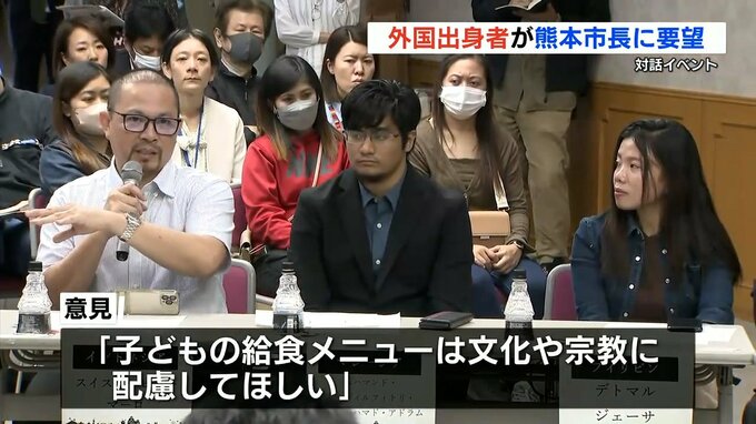 11月3日に開かれた、熊本市に住む外国人と市長との対話集会が話題となっている。外国人は台湾、米国、ウクライナなどが出身の15人。「行政書類の年号が元号中心でわかりにくい」「学校の給食メニューは、文化や宗教に配慮してほしい」などの意見を市長に伝えたという。