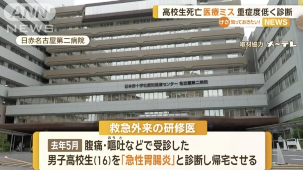 高校生は昨年5月28日、腹痛や下痢などを訴え、救急外来を2回受診。それぞれ別の研修医が「急性胃腸炎」と診断し、かかりつけのクリニックを受診するよう指示して帰宅させた。