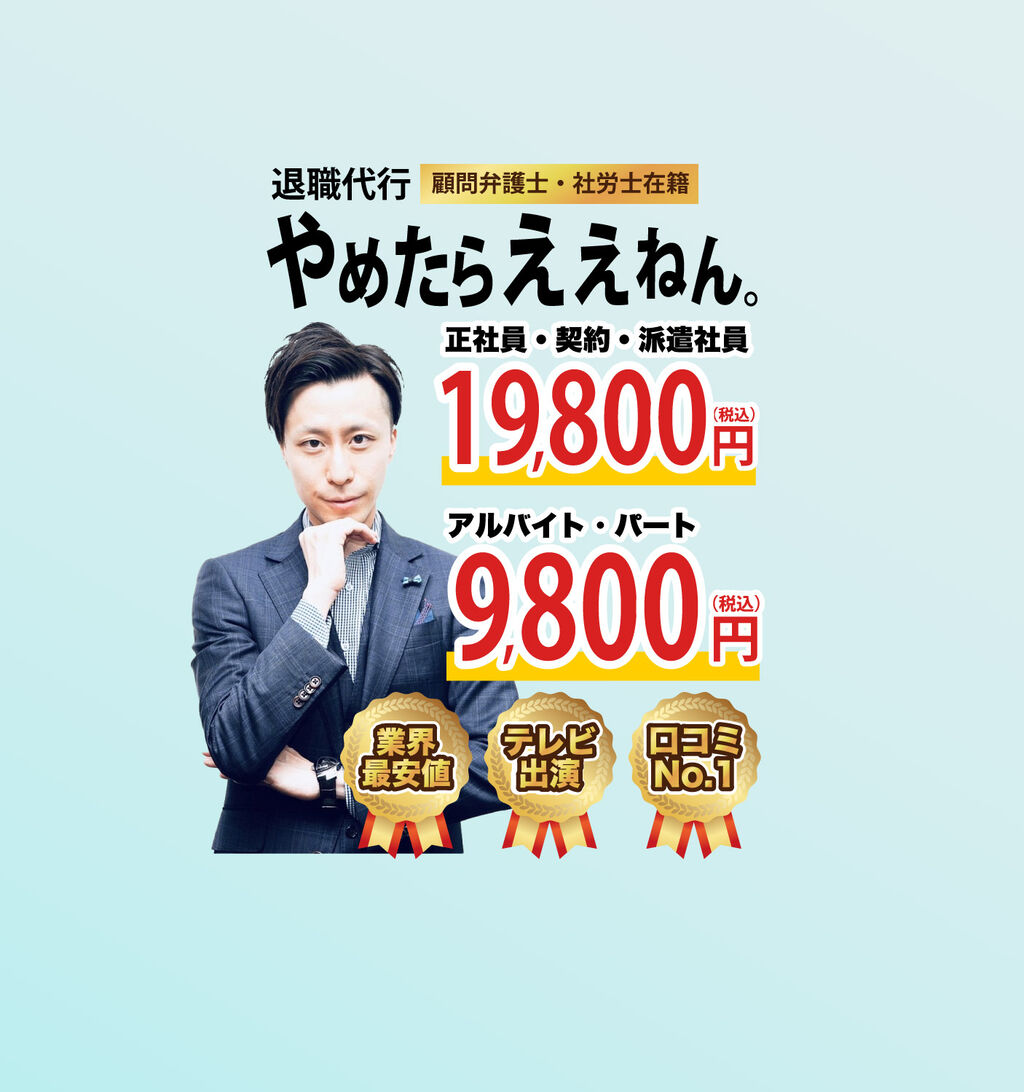 | 退職代行サービス(たいしょくだいこうサービス)とは、労働者の退職の手続を代行するサービスである。社会的に転職者数が増加したことや、会社側の執拗な引き留めなどの労働問題がその背景にあると考えられている。退職代行は「民間業者」「労働組合」「弁護士法人」の3種類に分類される。 業務の内容は業者ごとに異なるが、大きくは以下で示すとおりである。… 5キロバイト (680 語) - 2024年10月20日 (日) 07:49 |
