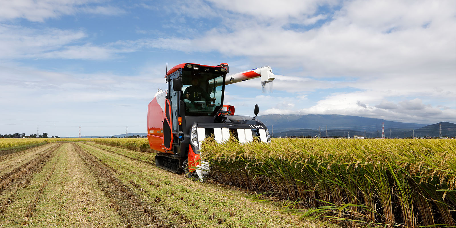 収穫も大型の刈取機で一網打尽だから